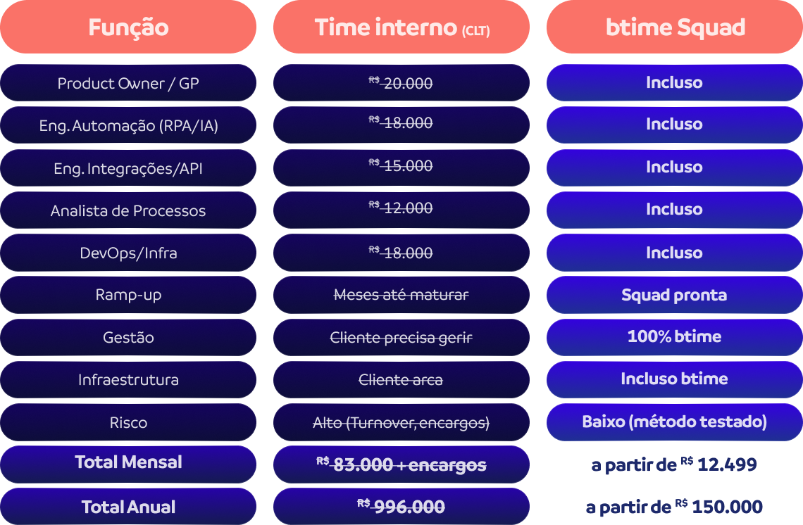 Montar um time interno custa quase R$ 1 milhão/ano.