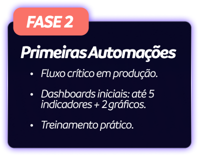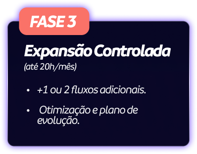 Modelo recorrente e escalável — a automação cresce junto com sua operação.